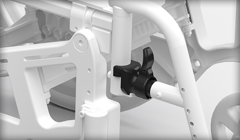 Širina in globina okvirja, višina naslonjala, višina sedeža od tal in težišče so enostavno nastavljivi. Prilagoditev invalidskega vozička za dostavo ali kot odziv na spreminjajoče se potrebe uporabnikov še nikoli ni bila lažja pri nagibnem stolu za odrasle.