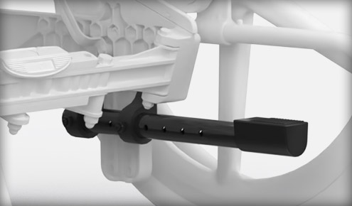 Nastavljiva točka vrtenja (razpon 5,1 cm) za optimalno pozicijo kolena ter nastavljiva podpora za meča.