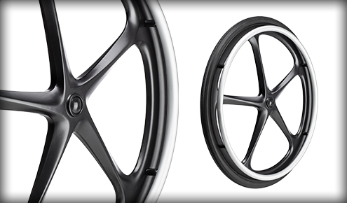 Ekskluzivno za Ki, magnezijevo kolo Maxx Mag zmanjša celotno širino invalidskega vozička za do 2,5 cm, hkrati pa zagotavlja večjo togost in manjšo težo kot klasična najlonska kompozitna kolesa Mag.