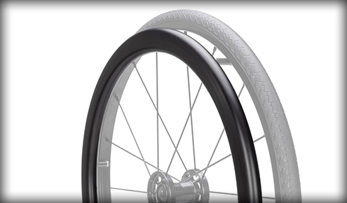 Razdalja med obročem in platiščem je zmanjšana, kar zmanjša skupno širino vozička za približno 1,9 cm.