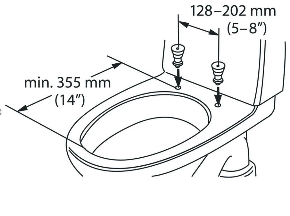 Razmerje med luknjami za vijake v straniščni školjki (mm) |