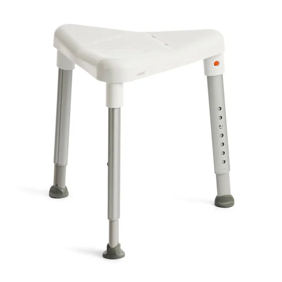 Stabilen in varen tuš stol z edinstveno zasnovo s tremi nogami