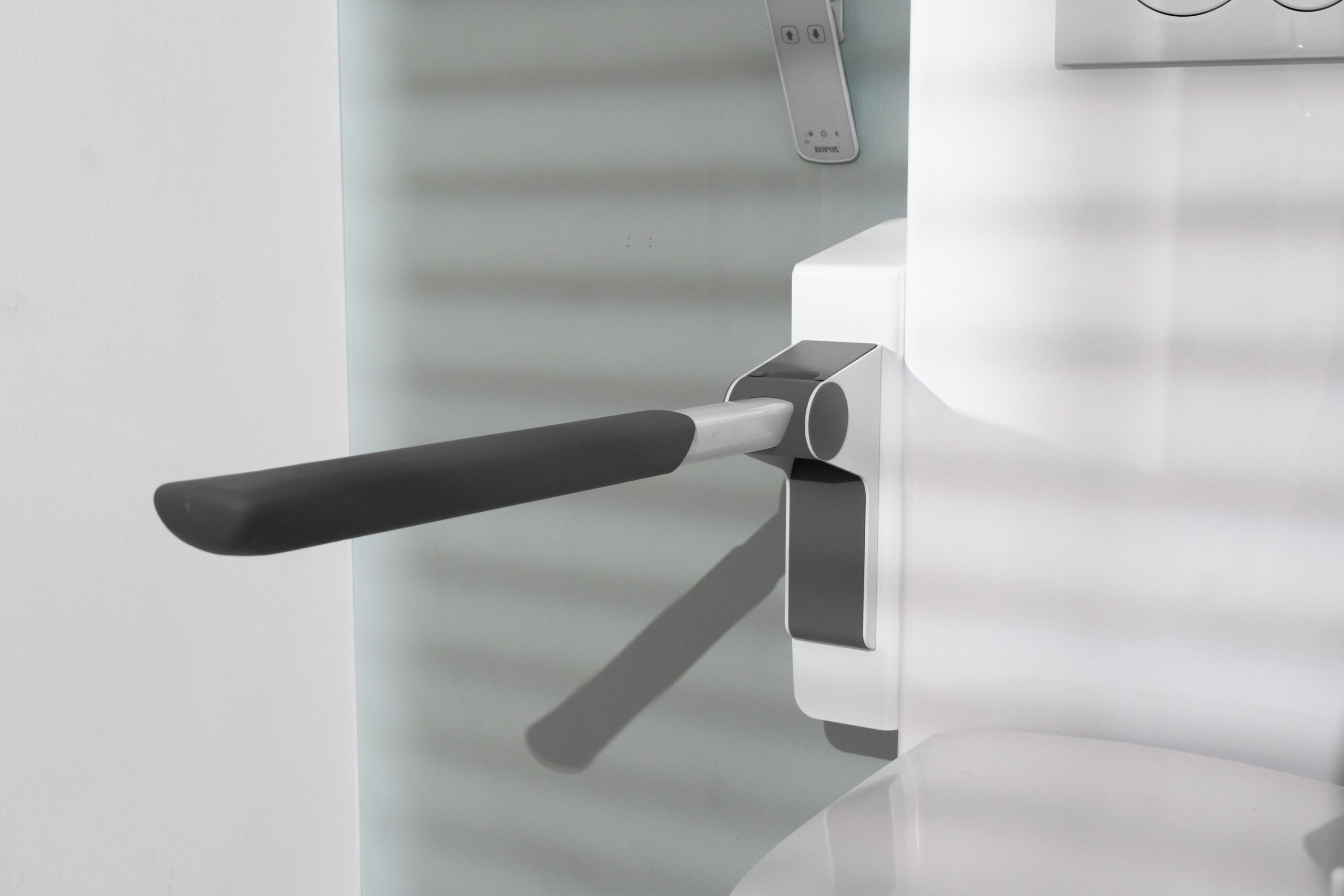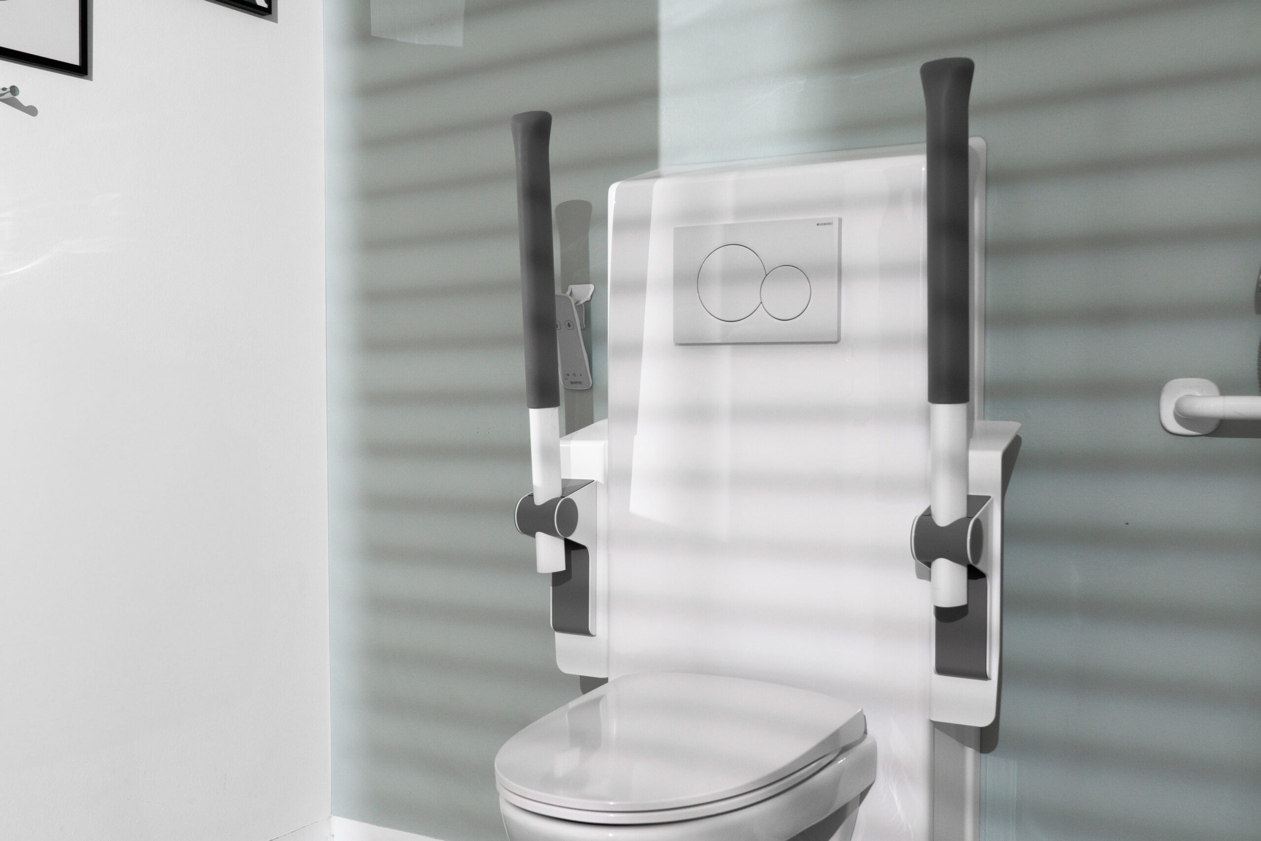 Dvigalo za stranišče je idealno za ljudi z omejeno mobilnostjo. To lahko vključuje starejše, invalide ali tiste, ki okrevajo po operaciji ali poškodbi. Prav tako koristi negovalcem, saj zagotavlja varnejšo in učinkovitejšo oporo. Ne glede na to, ali želite ohraniti neodvisnost ali potrebujete pomoč v kopalnici, dvigalo za stranišče ponuja zanesljivo in praktično rešitev za izboljšanje vsakodnevnih rutin. Dvigalo je zasnovano tako, da je združljivo z vsemi standardnimi stenskimi stranišči, za dodatno stabilnost in varnost pa ga je mogoče kombinirati tudi z podpornimi rokami za stranišče.