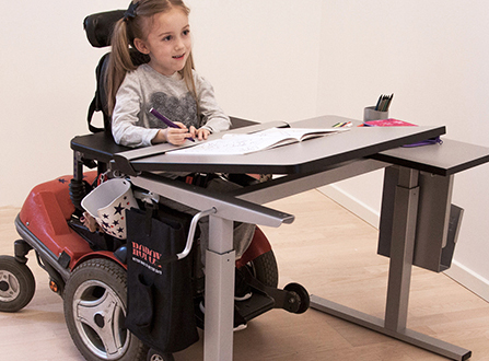 Miza ima široko paleto možnosti prilagajanja. Nastavite lahko višino mize, mizo pa lahko tudi nagnete, kar je odlična pomoč za slabovidne in ljudi z omejenim dosegom.