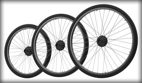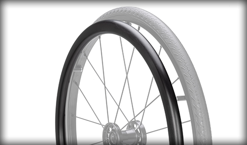 Ko je skupna širina vozička pomembna, je standardni prostor 3/4 med obročem kolesa in ročajem zmanjšan na 3/8 na vsaki strani. To zmanjša skupno širino vozička približno za 2 cm.