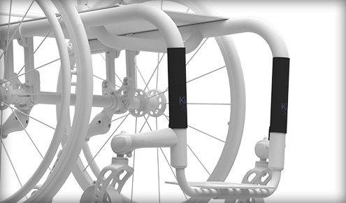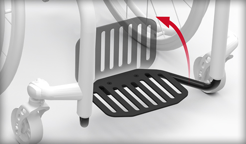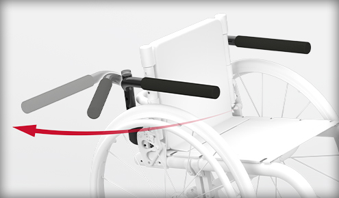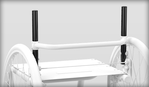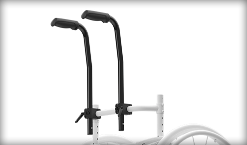 Ergonomski gumijasti oprijem omogoča enostavno premikanje anti-tip(ov) v katero koli od treh dosegljivih pozicij. Med sedenjem preklopite anti-tip(e) navzgor ali v uporabo. Za zmanjšanje velikosti vozička med prenosom premaknite anti-tip v 'shranjeno' pozicijo.