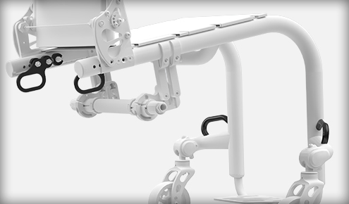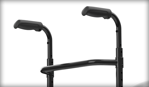 Integrirana cev z gumijastim oprijemom za pomoč skrbnikom pri premikanju po robnikih, pragih itd.