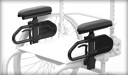 Doda eleganten videz vozičku z aluminijastimi nastavljivimi bočnimi ščitniki. Enostavno nastavljivo za optimalen položaj. Oblazinjena vstavka za večje udobje in zaščito. Na voljo v mat črni ali po meri pobarvano.