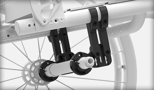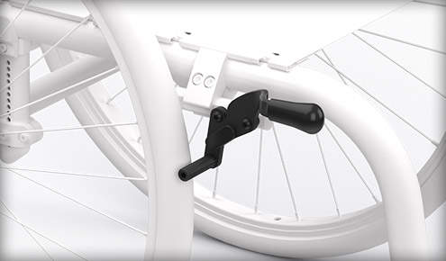 Sistem One Arm Drive za hitro sprostitev, na voljo za kolesa 20, 22 in 24, z možnostjo ali brez camberja. Ročaj za pogon lahko izberete v anodiziranem aluminiju ali s polimerno prevleko.