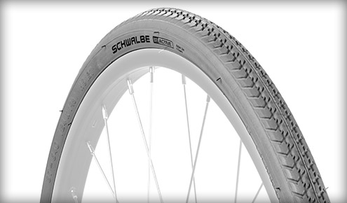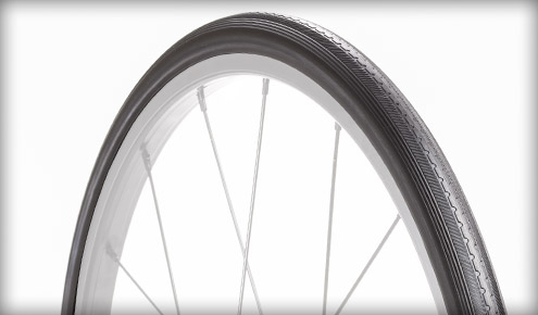 Visokotlačna, odporna proti predrtju, zmogljiva pnevmatika. 50 kg pritiska. Pnevmatike z visokim tlakom imajo minimalen kotalni upor. Glede na velikost kolesa se lahko znamka in barva razlikuje. Za več podrobnosti kontaktirajte službo za stranke.