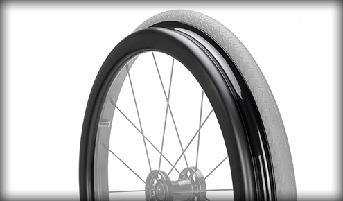 Širši profil uporablja oblikovan poliuretan za odlično pnevmatiko. Trd na zunanji strani za nizek kotalni upor, mehak znotraj za blaženje. Na voljo v 10,2–15,2 cm.