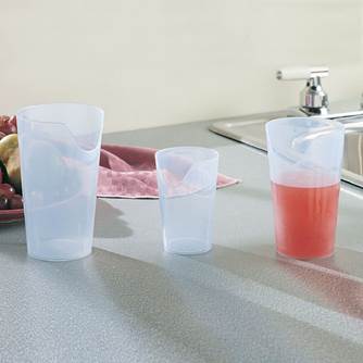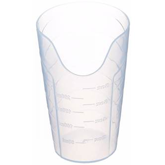 Izrez uporabniku omogoča, da pri požiranju ohrani pravilen položaj glave in vratu, kar omogoča lažje in varnejše pitje. Od otrok do odraslih ta izdelek preprečuje težave pri požiranju v osebnem in terapevtskem okolju. Je klasificiran kot profesionalni prilagodljivi pripomoček za pitje, ki se uporablja v bolnišnicah, klinikah in domovih za ostarele za tiste ki potrebujejo posebno nego med pitjem. Izdelano iz prozornega polipropilena, primernega za pomivanje v pomivalnem stroju, ki uporabniku in negovalcu omogoča spremljanje vnosa tekočine (na kozarčku oznake v ml)