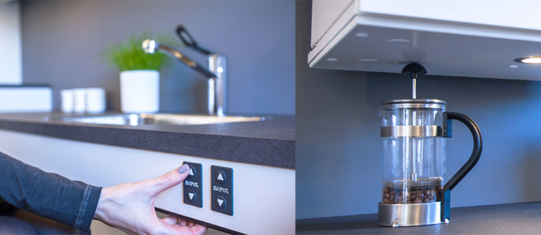 Električni dvižni sistem se lahko vgradi v nove kuhinjske omare ali pa nadgradite obstoječe omarice, ki so primerne za starejše in invalide.