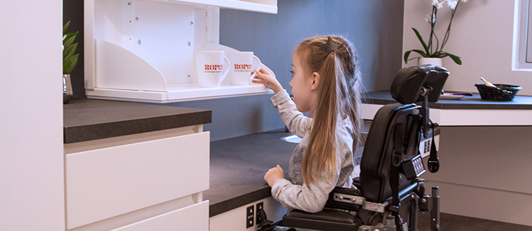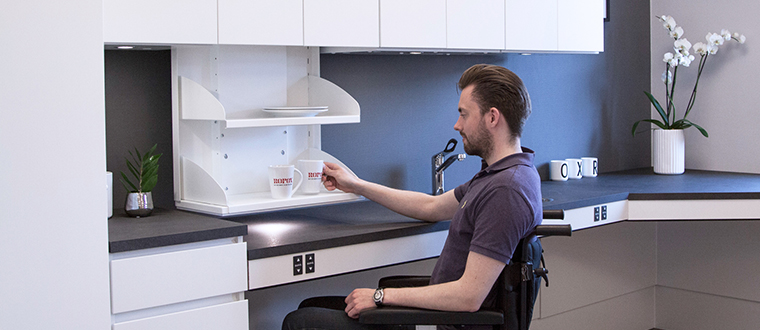 Ko je VertiInside nameščen, lahko police v zgornjih omarah električno nastavite 49,5 cm v višino. To pomeni, da lahko sedeči uporabniki spustijo police v omari, vsebina omare pa je lahko dosegljiva. Tudi ko je omara spuščena, je na kuhinjski delovni površini še vedno veliko prostora za kuhinjske pripomočke in kuhinjska opravila.